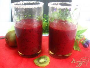 Тем временем готовим посуду. Верхний край бокала обмакнуть в сироп - вода с сахаром, а потом в сахар. Можно дольками лимона и апельсина украсить бокал.