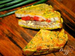 Закрытый тост в яичной панировке с куриными сердечками и сыром . Хоч ...