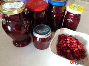 Добавим мед и бруснику.Разминаем дальше,стараясь раздавить все ягодки.