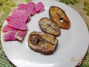 На овощи с соусом, выкладываем рыбу. Прикрываем фольгой и отправляем запекаться в духовке. Температура 180*, время запекания 25-30 минут.