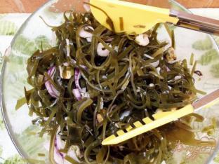 Готовый салат полить заправкой.